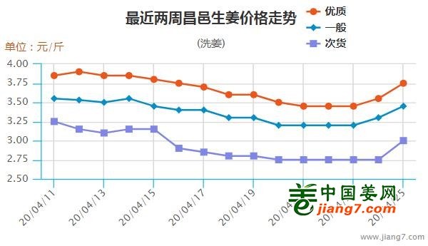 图一 2020年第17周昌邑生姜价格走势图