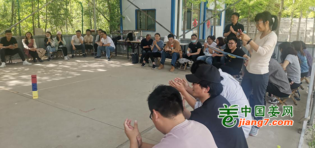 经过第一轮游戏的磨合,各组成员之间默契倍增,接下来的众人建塔游戏各小组间竞争十分激烈。众人建塔,组内成员通过绳子控制铁钩,将三层积木搭建起来,游戏过程中,参与人员不得进行任何交流。搭建过程中有一组成员,多次在搭建最后一个积木时轰然倒塌,但他们没有放弃,一直调整角度努力尝试,在其他小组的鼓励下,最终搭建成功。一根绳子,承载着责任与担当,承载着信任与关怀,承载着更多的齐心协力,不惧困难。