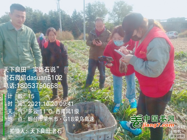 10月20日,秋风萧瑟,银露玉珠。中国姜网生态生姜种植技术及生态生姜基地测产团队一走进莱州市土山镇。