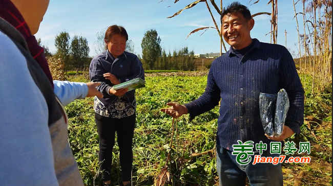 中国姜网王总细心的询问孙老师中国姜网生态生姜套餐肥的使用情况,并耐心讲解科学使用方法及高产优质效果,为孙老师解答生态生姜种植疑惑,中国姜网测产组还为孙老师送上了中国姜网种植技术手册,为明年生态生姜优质高产打下坚实基础!